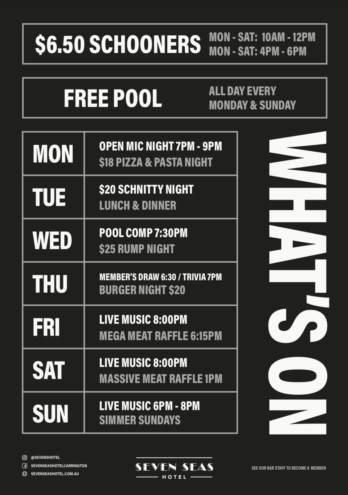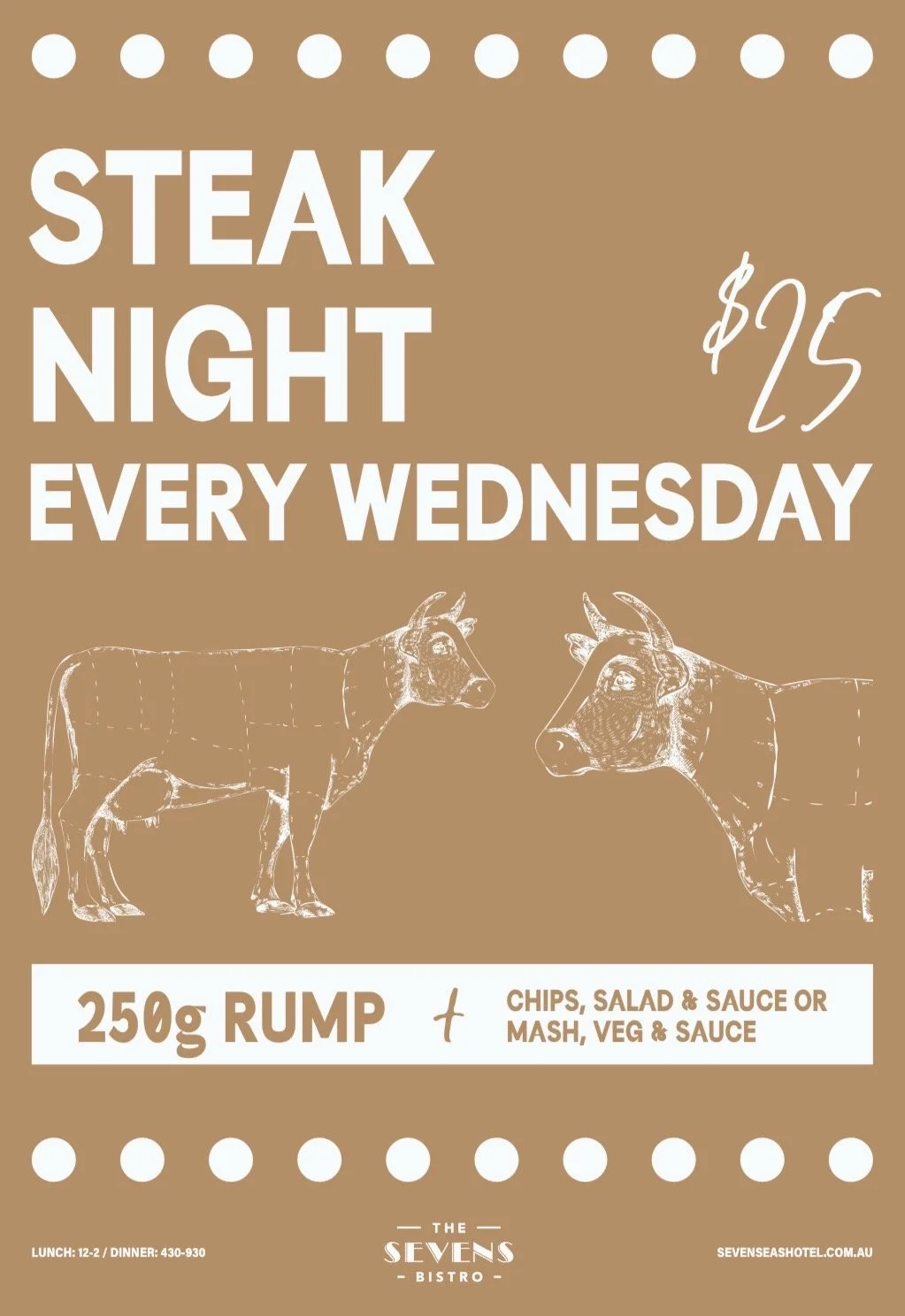 Authentic Pub Grub done the Sevens way. Delicious pizzas, pastas and the classics using fresh, quality ingredients. We believe that the key ingredient to great food is passion, and we're committed to delivering an exceptional dining experience that reflects our love for food.